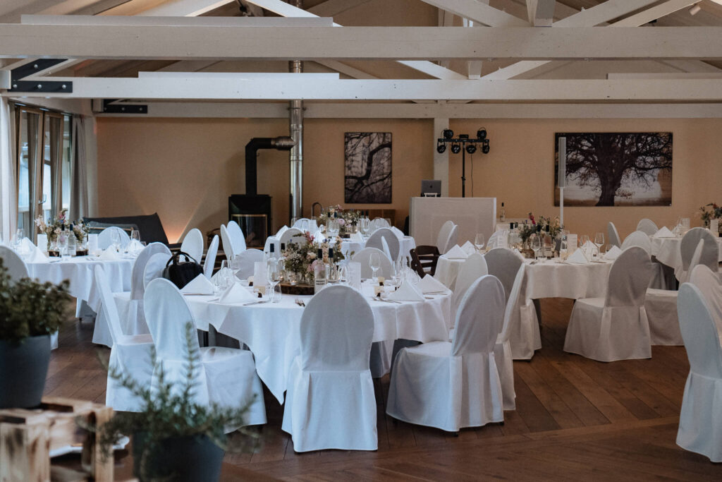 Nach der Zeremonie können die Hochzeitsgäste beim Empfang mit regionalen Canapés und einem Glas Wein den Tag genießen. Das WALDWERK Restaurant im Hotel verwöhnt die Gesellschaft mit kreativen und regional inspirierten Gerichten. Ob Menü oder Buffet – die kulinarische Vielfalt lässt keine Wünsche offen. Am Abend lädt der Saal zum Tanzen ein, ob mit DJ oder Live-Musik, und auch Candy-Bars, Hochzeitstorten und Mitternachtssnacks werden angeboten.